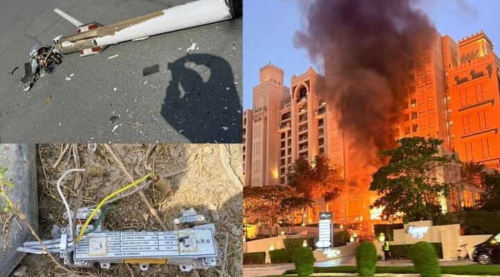 Authorities in Dubai reported that debris from an intercepted drone caused a fire near a well-known luxury hotel in the Palm Jumeirah area. Initial social media footage showed flames near the entrance of the property, prompting widespread concern. However, officials clarified that emergency teams responded quickly and contained the situation.
